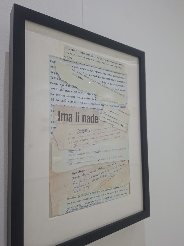 Кроз пажљиво одабране фотографије и архивску грађу, поставка сведочи о личним и дубоко потресним причама деце са Козаре и Поткозарја током Другог светског рата, као и о њиховом дугом и сложеном путу ка поновном проналажењу сопственог идентитета.